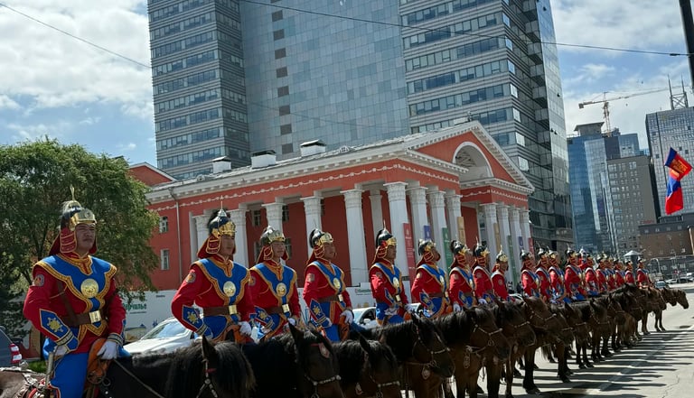 수흐바타르 광장 방문 – 몽골을 대표하는 상징적인 공공 중심지로, 정부 청사와 문화 건물, 박물관들로 둘러싸여 있으며, 몽골의 역사와 현대 생활의 중심을 상징합니다.