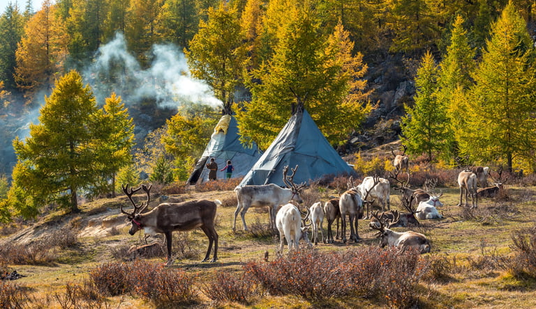 09:00 Fueled and ready, we'll embark on a reindeer ride towards the summit of Renchinlumbe Mountain, a sacred site revered by the Darkhad shamans.