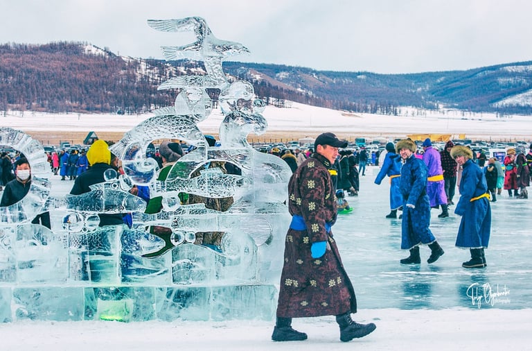 Held in the charming village of Khatgal, Khuvsgul Province, this spectacular festival brings together locals and visitors from around the world to celebrate Mongolia’s unique winter culture. Over several days, the frozen surface of Lake Khuvsgul becomes a stage for ice sculpture exhibitions, horse-drawn sled rides, ice wrestling, skating, tug-of-war, and traditional Mongolian Art performance and games – all performed on the dazzling crystal-clear ice of the lake.