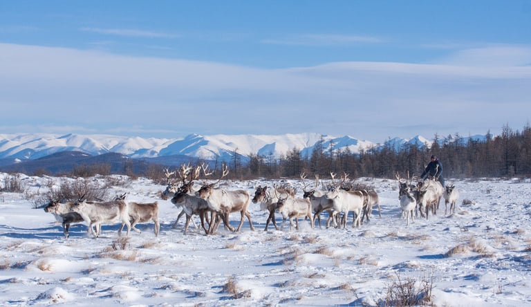 RENTIER- UND TSAATAN-STAMMES-TOUR – Die Tsaatan gehören zu den letzten verbleibenden nomadischen Rentierhirtenvölkern der Welt und zählen zur größeren ethnischen Gruppe der Tuwa. Ihre Lebensweise wurde über Jahrhunderte hinweg vom Rentierhirten geprägt, was im Zentrum ihrer Kultur, Wirtschaft und spirituellen Praktiken steht. Mongolische Rentiere sind im Vergleich zu anderen Rentierarten mittelgroß. Männliche Tiere sind in der Regel größer als weibliche.